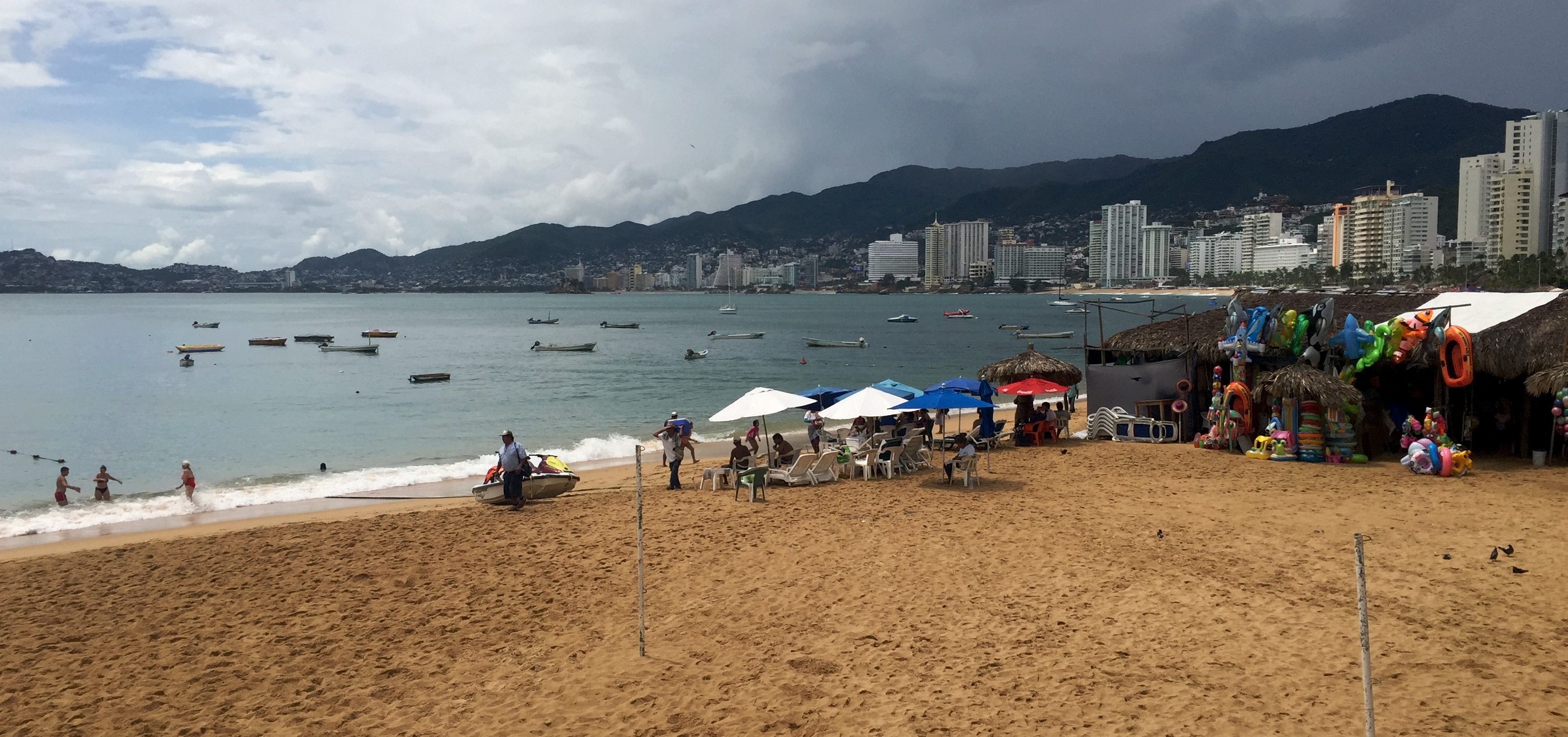 I made excellent time, left the toll road near the city of Acapulco and was greeted at a checkpoint by no less than 25 soldiers and police officers carrying automatic weapons of varying calibers. Others armed with .50 calibers were ensconced behind sandbags. I immediately and sensibly pulled over when they flagged me down. This crew was very professional and I dealt with a middle-aged, no-nonsense gentleman in a polo shirt, baseball cap and chinos who spoke excellent English and struck me as the type that may have picked up some of those language skills in classes at Langley. He examined my driver’s license and asked if I was travelling alone. When I said that I was, he returned my license and, after giving me directions, suggested that it would be in my best interest to proceed directly to the hotel zone and enjoy the beaches there.