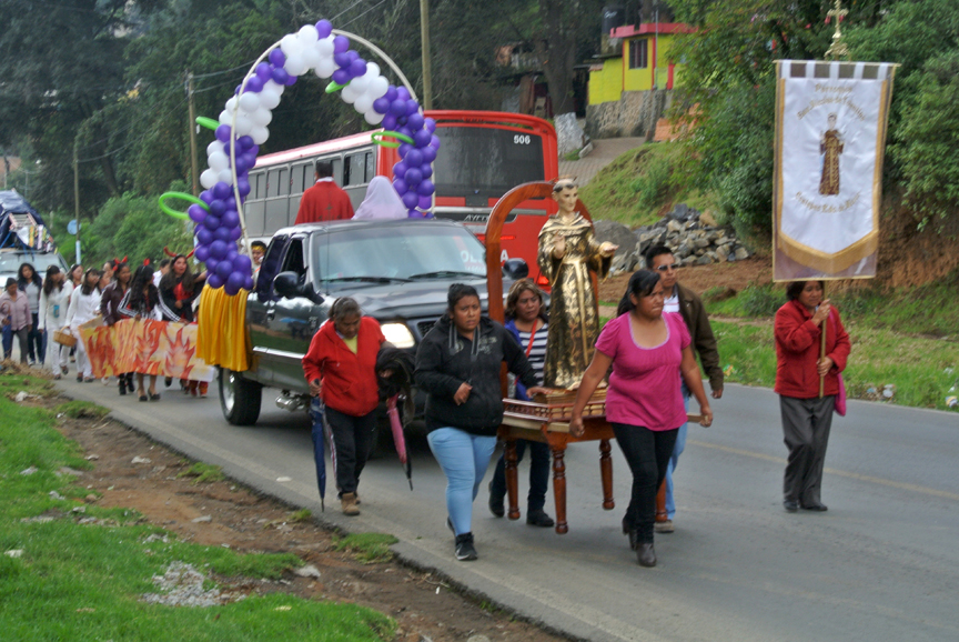 Soon I was off the major roads and in a beautiful and mountainous forest of pines. The cool, misty silence was a world removed from the chaotic miasma on the other side of the mountain range. I was actually beginning to warm up to the country. Maybe I had been too hasty to judge in my previous negative experiences. I rounded a corner as fireworks exploded overhead and found myself in the midst of procession through town led by a priest in white robes, a group directly behind carrying a gilded statue of a bald saint, with costumed dancers and a mariachi band bringing up the rear.